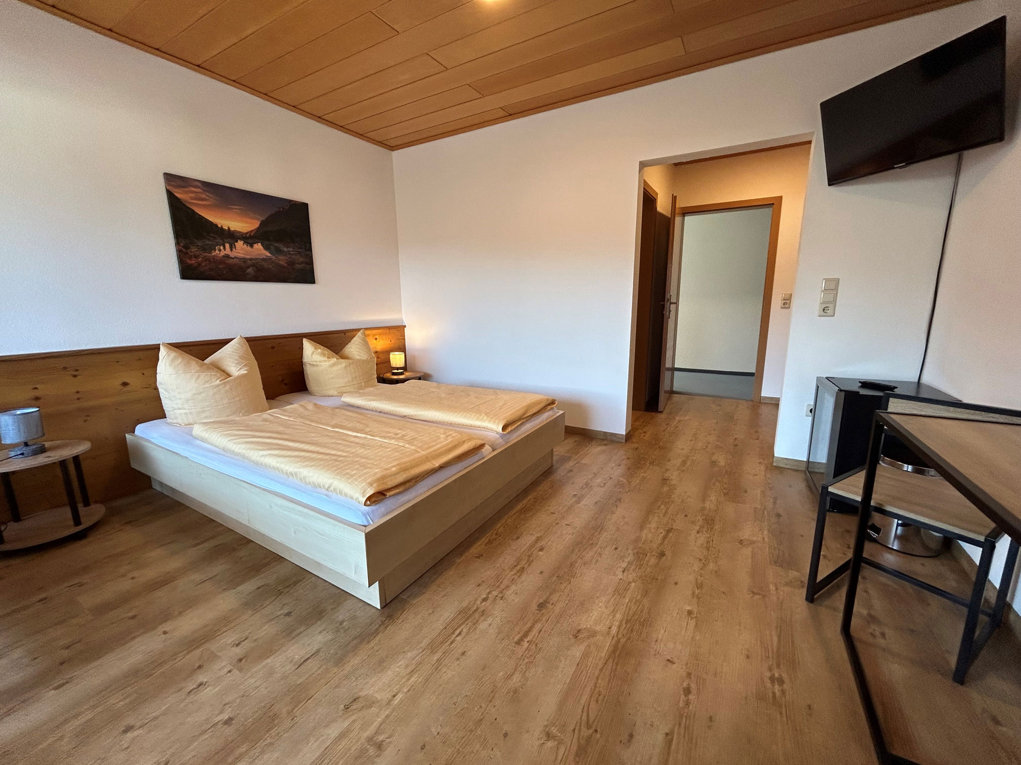 Auch zum Übernachten sind Sie bestens aufgehoben: Unsere liebevoll eingerichteten Gästezimmer laden zum Verweilen ein. Umgeben von Wiesen, Wäldern und einer traumhaften Landschaft ist unser Haus der ideale Ausgangspunkt für Ausflüge, Wanderungen oder einfach zum Entspannen.